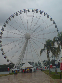 这是我第二次来到这里。在四个月后重游旧地,感觉和想法竟然不径相同。陪在身边的人也都不一样了。上一次,是和慧一起来的。那一次,我们排着队,期待着搭上摩天轮的时候,竟然下起了倾盆大雨。那时的我们,狼狈极了,被雨浇熄了我们兴致勃勃的心。慧说,下一次吧, 下一次我们再来搭这个马来西亚的摩天轮吧!